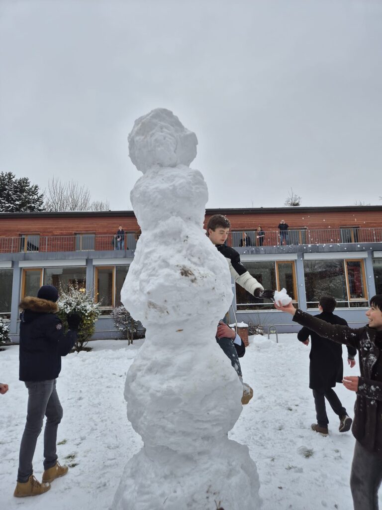 Nach einer Klausur über ein gut bekanntes Thema gingen wir in deutlich gehobener Stimmung in ein Seminar zur Allgemeinen Relativitätstheorie. 🪐 Allerdings stellte sich schnell heraus, dass die Minderheit, die sich noch für die Minkowski-Raumzeit interessierte, kaum Chancen hatte. Trotz des Ärgers der Organisatoren bauten wir stattdessen einen riesigen Schneemann. ⛄