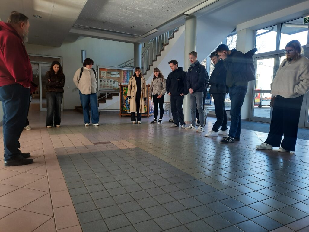 Die drei Gymnasien mit Spezialklassen für MINT-Fächer arbeiten in Thüringen intensiv zusammen, stehen im Austausch zu inhaltlichen Fragen sowie Wettbewerben und denken auch an Zukünftiges. So ist gerade die Nachwuchsgewinnung für die Schulen in Ilmenau, Erfurt und Jena von großer Bedeutung und dabei oft auch die Unterbringung von Jugendlichen im Internat ein Thema. Froh ist dieses Netzwerk immer, von außen Impulse oder Anregungen zu erhalten, um neue Wege zu gehen. So geschehen in Osterferien des Jahres 2026, als an den Universitäten und Hochschulen in Thüringen das Sommersemester wieder begonnen hat und 18 Studierende des Masterstudiengangs Architektur unter Leitung von Frau Prof. Stephanie Kaindl, Professur für Entwerfen und Bauen im Bestand, unser Gymnasium besuchte.