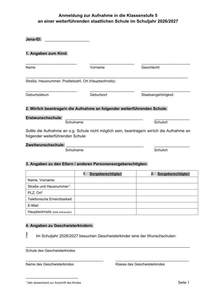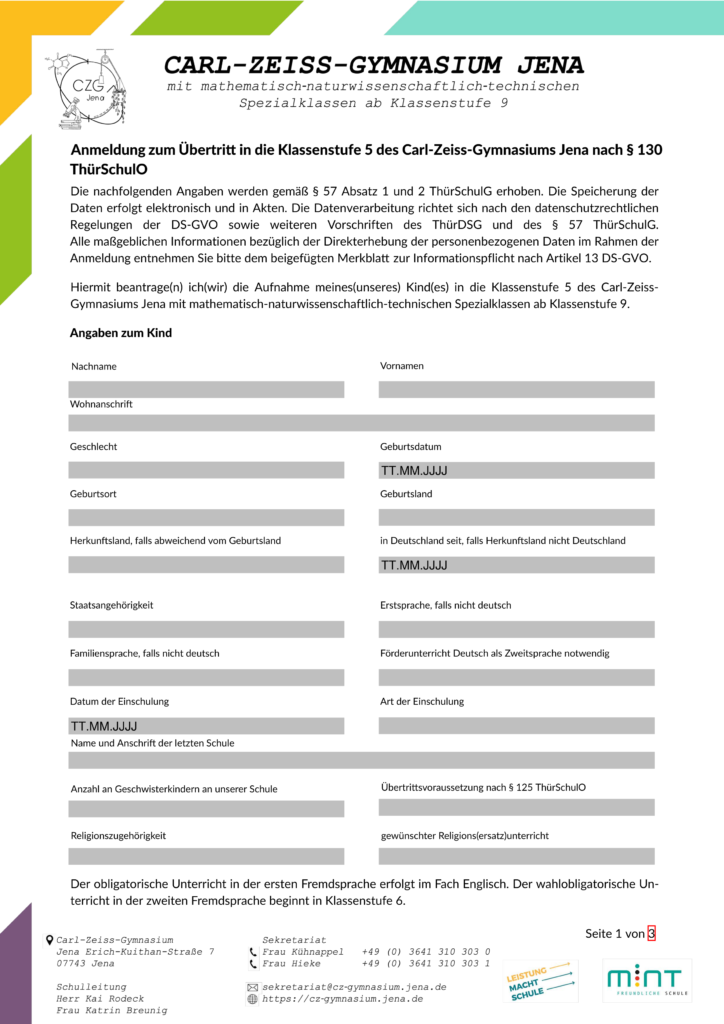 - das ausgefüllte Anmeldeformular des Carl-Zeiss-Gymnasiums Jena